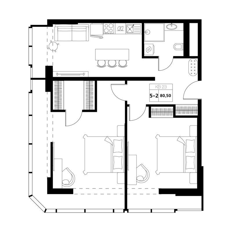 3-комнатная 80.5 м