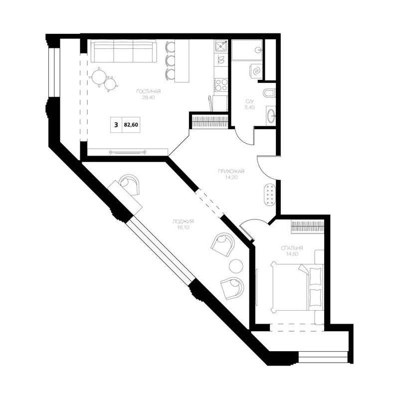 3-комнатная 82.6 м