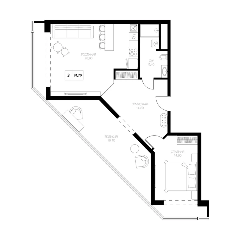 3-комнатная 81.7 м